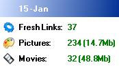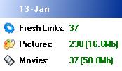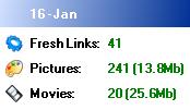 Each block shows the result from the crawler from one day. The crawler identified fresh lists and followed them to find out how many pictures and movies the gallery contained.